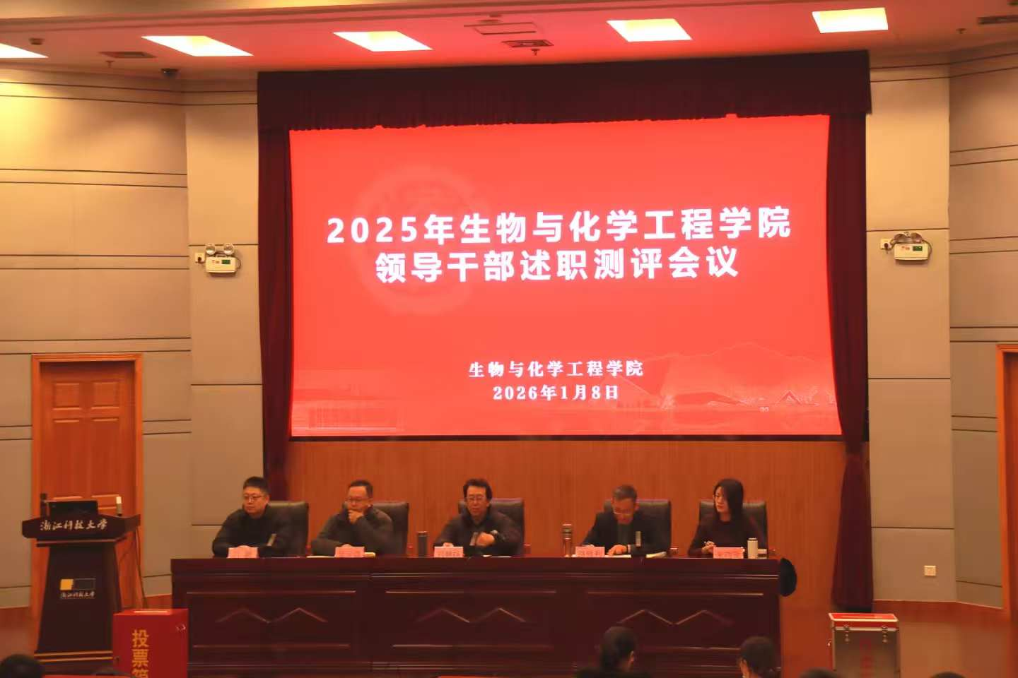 与会教职工秉持客观公正、实事求是的原则,认真填写测评表,从德、能、勤、绩、廉等多个维度,对学院领导班子及成员的履职情况进行民主测评。