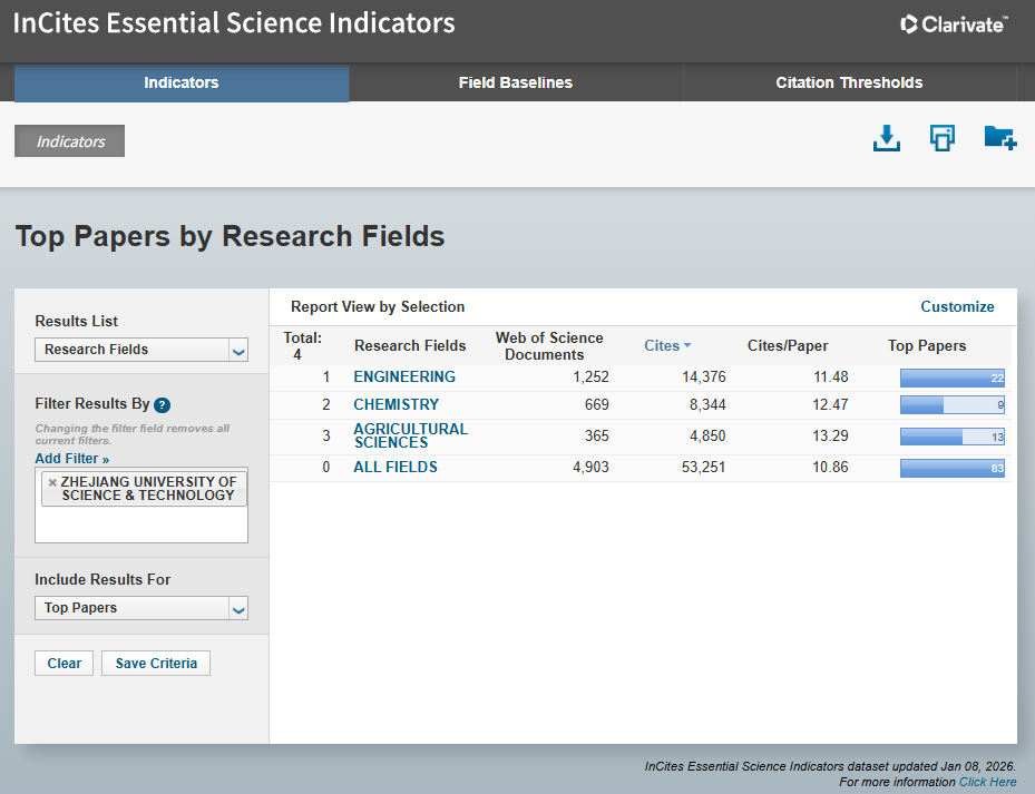 1月8日,科睿唯安(Clarivate Analytics)发布最新一期《基本科学指标数据库》(ESI)数据显示,我校“化学”学科首次进入ESI全球排名前1%,成为学校第3个ESI全球前1%学科。这一突破充分彰显了学校在化学及相关交叉领域的科研实力与学术贡献,获得国际广泛认可,是学校高水平学科建设进程中具有标志性意义的成果。