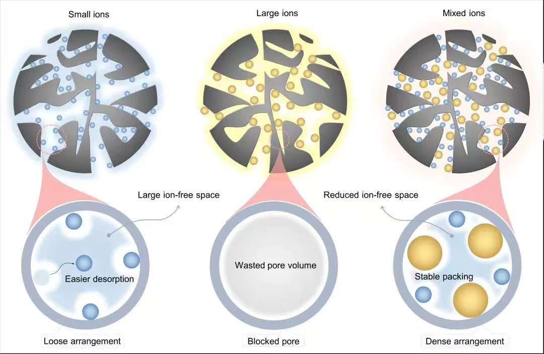 超级电容器作为一类关键的能量存储器件,在传统介电电容器与电池之间,构建了功率与能量性能的独特桥梁,其突出的功率密度与秒级快速充放电能力已成为重要技术优势。然而,在面向电网储能及电动汽车等重要应用时,其固有的能量密度不足仍是制约规模化部署的核心瓶颈。这一挑战根源在于其储能机制依赖于电极-电解质界面上的离子物理吸附过程。因此,如何增强电解质离子在多孔电极表面的吸附密度与吸附稳定性,成为提升超级电容器整体性能的关键所在。