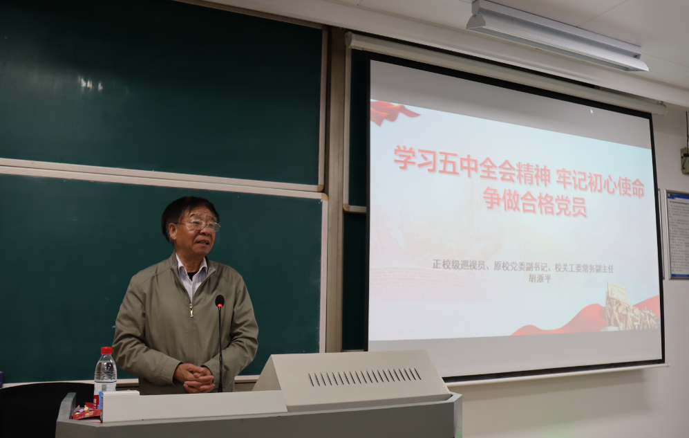 本次党校第一课由胡浙平书记开讲,胡书记作《学习五中全会精神 牢记初心使命 争做合格党员》的专题报告。他从“八个新”详细解读了党的十九届五中全会精神,他要求作为一名新时代的大学生应该主动关心国家大事,主动参与到国家的发展中来,为祖国的建设贡献自己的力量。接着,胡书记就如何做一名合格的党员向大家提出四点要求:端正入党动机、牢记初心使命;坚定理想信念;做立德立功全面发展的模范;自觉讲规矩、守纪律。