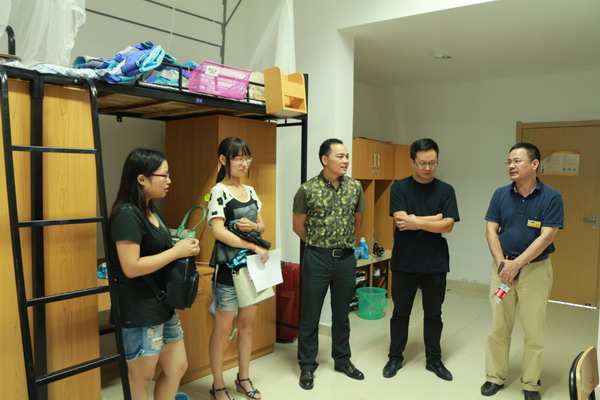 晚上6点,院长刘士旺、党委书记范伟刚、副书记葛龙威一行,带领辅导员、助班等走访新生宿舍看望新同学。学院领导每来到一个新生宿舍,都与新生进行亲切交谈,首先祝贺他们考上大学,其次欢迎他们加盟学院大家庭,为学院的发展建设带来新鲜力量。每到一处,学院领导都关心新生的生活及学习,希望新同学尽快熟悉和适应大学生活,树立远大目标,实现人生价值。