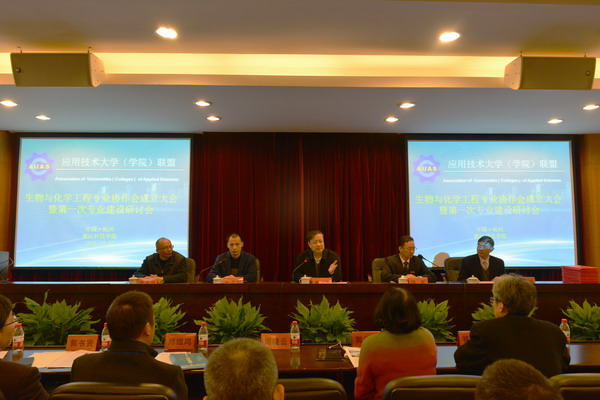 12月2日,应用技术大学(学院)联盟生物与化学工程专业协作会成立大会暨第一次专业建设研讨会在我校召开。应用技术大学(学院)联盟理事长孟庆国,浙江科技学院副校长冯军,应用技术大学(学院)联盟副秘书长李志华、张彦群等出席。来自南阳理工学院、安徽科技学院、武夷学院、宜春学院、淮阴师范学院等院校的专家学者、浙江省化工学会、浙江省食品工业协会、浙江省生物工程学会、浙江省造纸学会、杭州市食药局、杭州市农委、中国轻工出版社以及杭州、宁波、温州、台州等地的企业家参加本次大会。