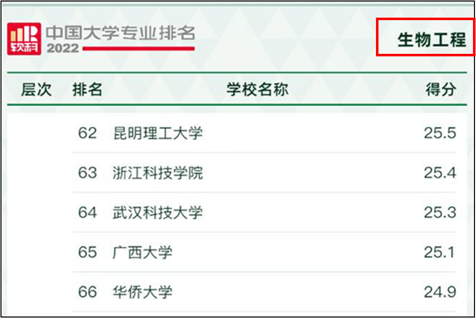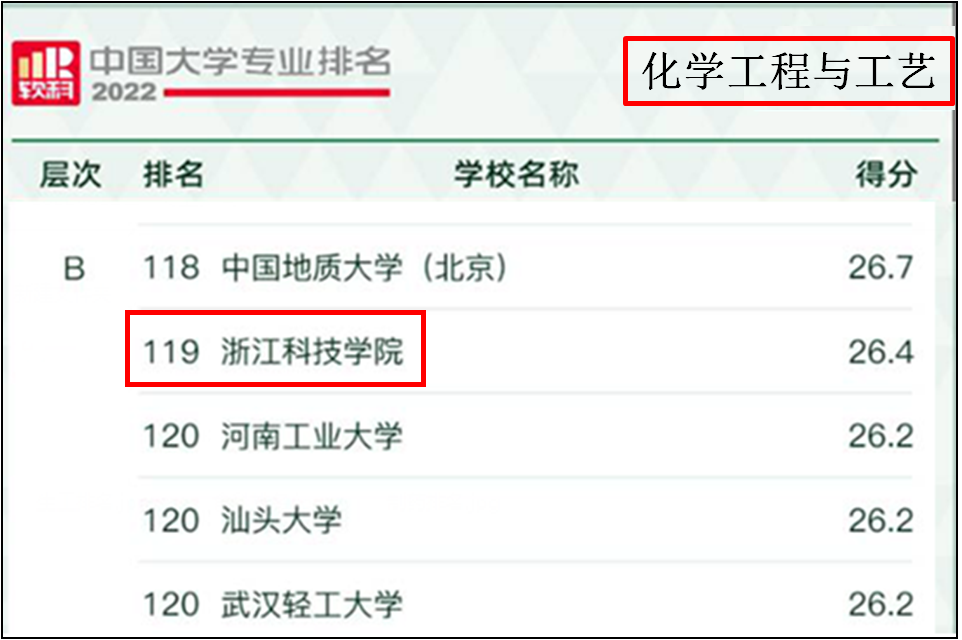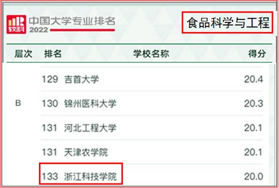 2022年6月18日,高等教育专业评价机构软科发布2022“软科中国大学专业排名”。365官网化学工程与工艺、生物工程、食品科学与工程及制药工程4个专业进入本次排名的B档,其中化学工程与工艺专业在省内继浙江大学、浙江工业大学、诺丁汉大学之后位列第4,生物工程专业排名第63位,制药工程专业首次进入B档。这标志着着365官网专业建设水平有了新突破,迈上了新台阶。