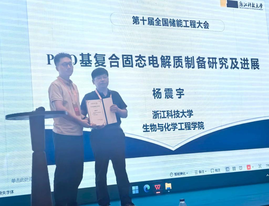 浙科大英国正版365官方网站对此次大会高度重视,由杨震宇教授带队,王帆副教授、徐喜连博士、张海博士等教师代表组成参会团队,深度参与了大会的各项学术活动。其中,杨震宇教授不仅主持了“固态电池”分会场,还作了题为《有机无机复合固态电解质的研究与进展》的邀请报告。报告系统梳理了该领域的最新研究动态,其团队在复合电解质界面调控方面的创新探索,为解决下一代高安全、高能量密度电池的关键技术瓶颈提供了全新思路,引发了与会专家的热烈讨论和广泛关注。
