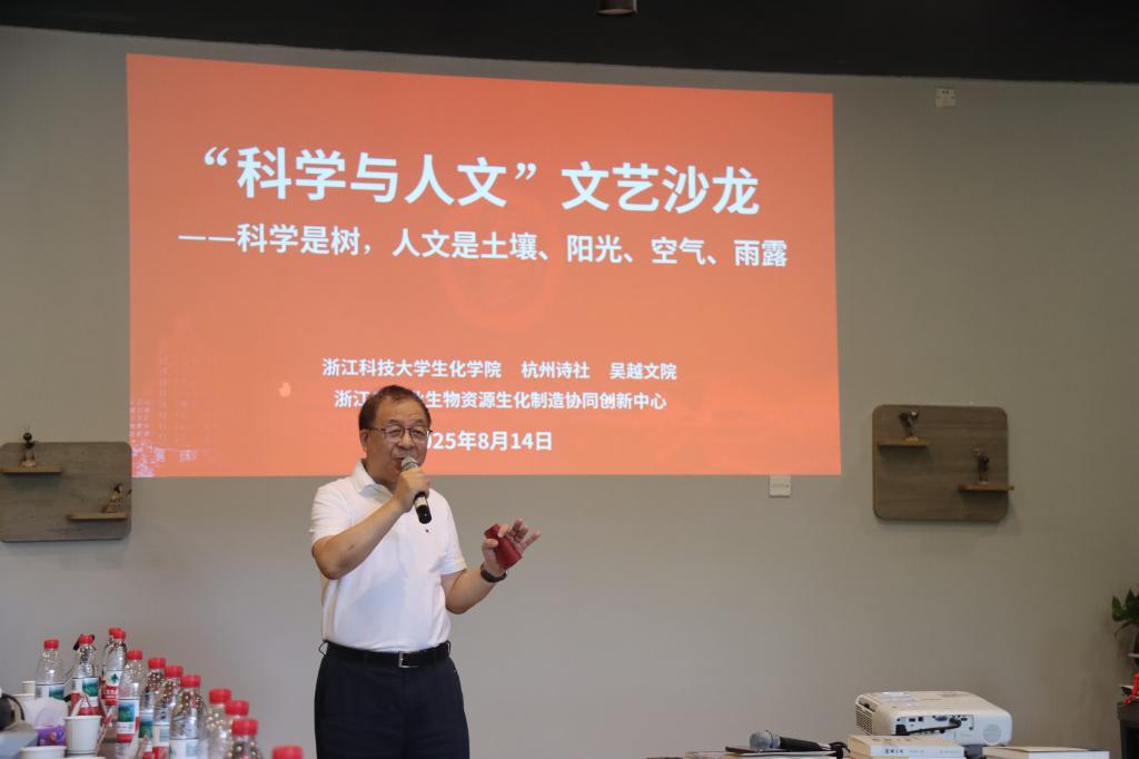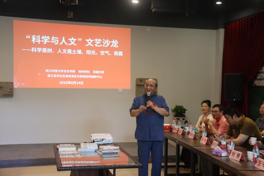 8月14日,“科学与人文”文艺沙龙在英国正版365官方网站校友之家顺利举办,沙龙主题为“科学是树,人文是土壤、空气、阳光、雨露”,由英国正版365官方网站英国正版365官方网站、杭州诗社、吴越文院、浙江省农业生物资源生化制造协同创新中心联合主办,学界、文化界等领域学者嘉宾,浙科大部分师生与校友齐聚一堂,共同探讨科学与人文的交融之美。